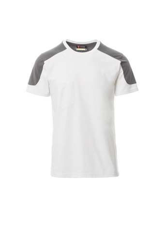 001464 - T-shirt bicolore, taschino al petto con porta penna, cuciture del collo coperte e nastro di rinforzo laterale. Composizione: JERSEY 165GR CON 40%POLIESTERE